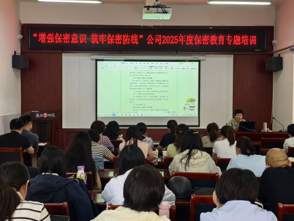 为深入贯彻总体国家安全观,强化全员保密责任意识,5月28日,公司举办了2025年度保密教育专题培训会,以“理论学习+案例警示”双模式筑牢保密工作思想防线。来自各部室、分公司的42名保密工作负责人及相关人员参加培训。